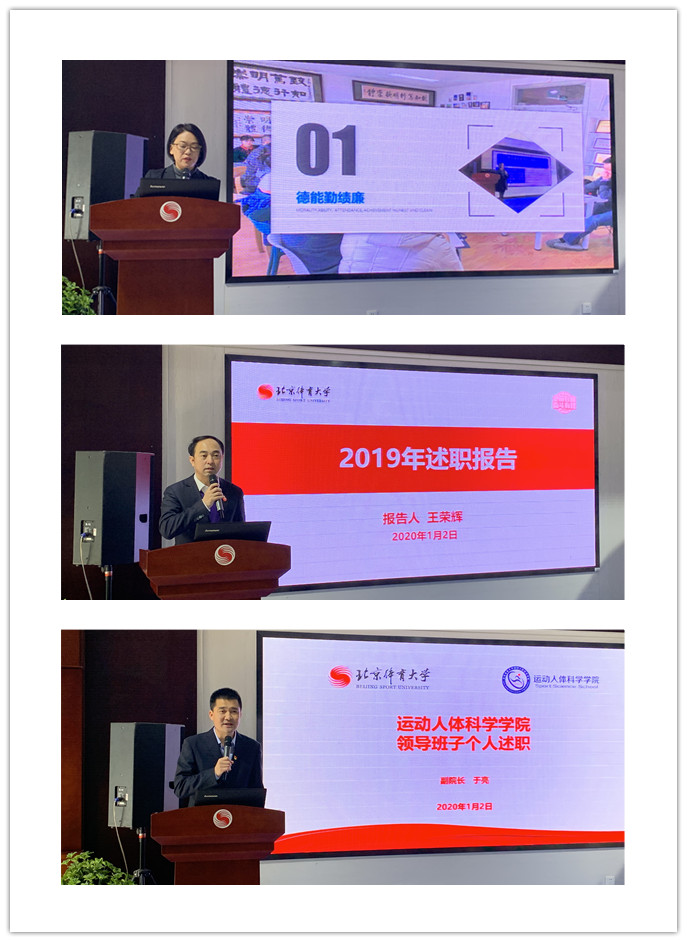 分党委书记雷厉、院长王荣辉、副院长于亮分别从“德、能、勤、绩、廉”五方面,结合岗位职责和工作任务,对一年来负责和参与的党建、思想政治、学生工作、学科建设、教学、科研、人才队伍建设、国际化办学以及社会服务等方面工作进行了认真和客观的述职,系统总结了学院一年来的成果,深刻剖析了存在的问题和不足,明确了2020年的工作思路和努力方向。