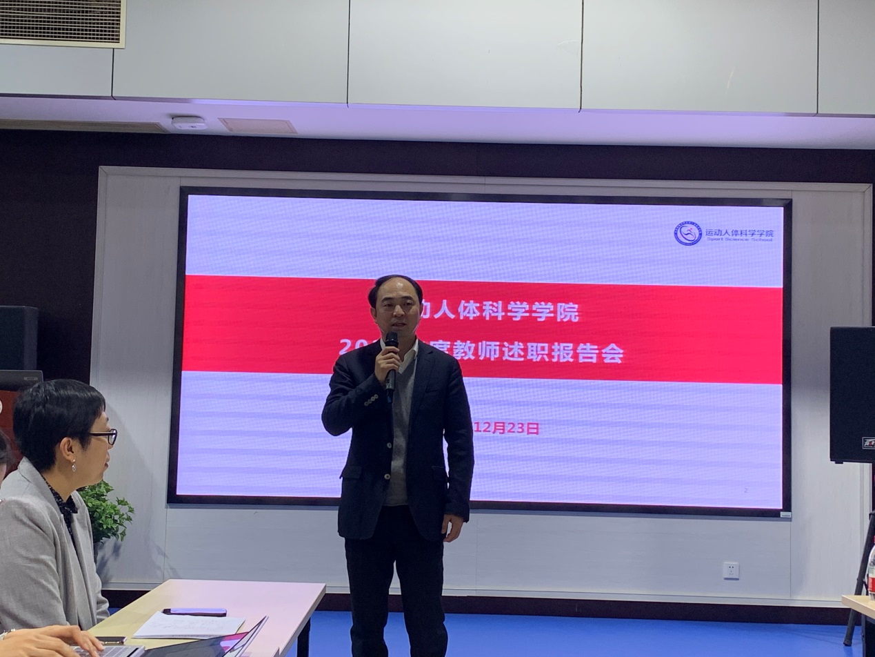 我院运动解剖学、运动生理学、运动生物力学、运动生物化学、体质与健康五个教研室的28名教授和副教授,分别对2020年度的思想政治、师风师德、教学成绩、科研成果、社会服务等方面进行全面总结和陈述。学院教师思想与师风师德良好,克服了疫情带来的困难和影响,很好地完成了学校、学院的教学工作,在国内外重要期刊发表学术论文,申报和完成国家和省部级各类课题研究工作,积极参与学校和学院的各项改革和发展工作,成果丰硕,充分体现了我院教师较高的教学、科研和社会服务能力。