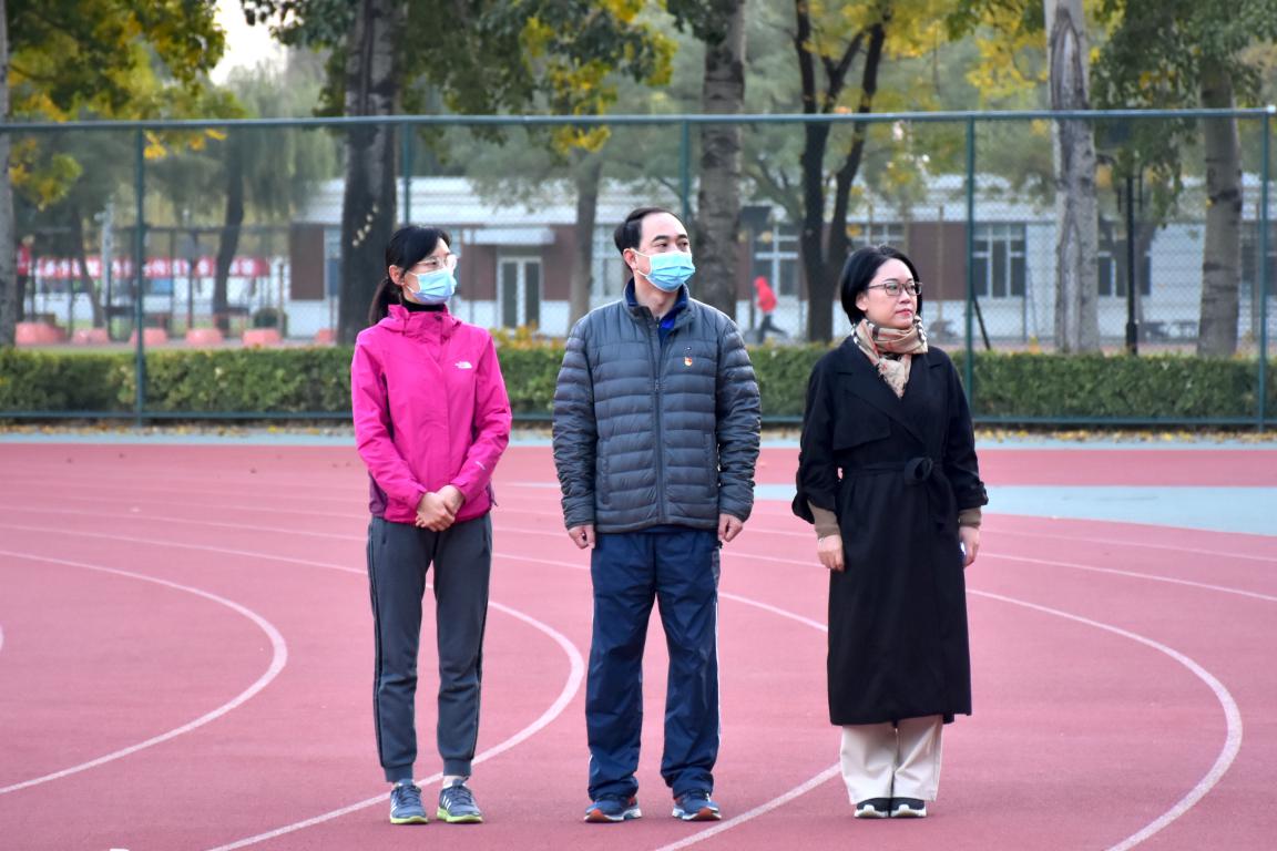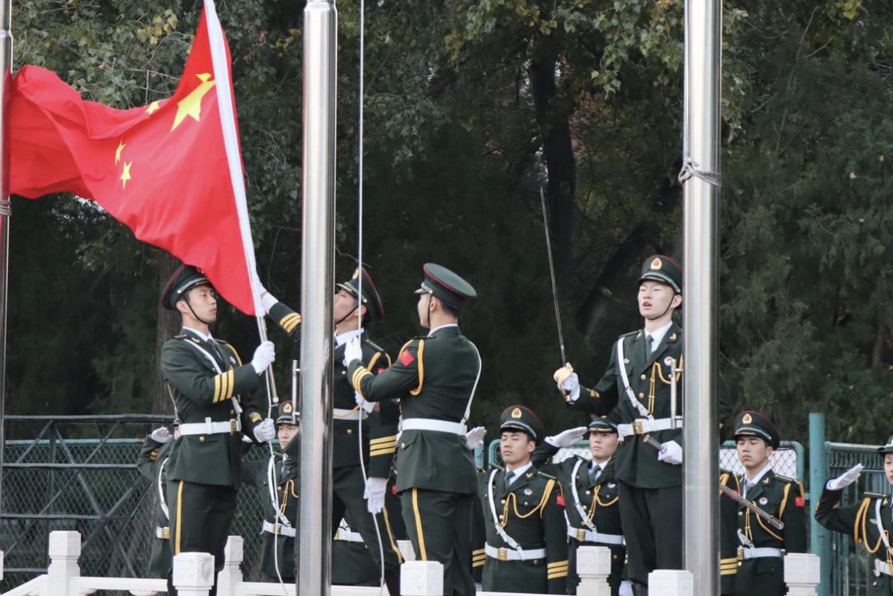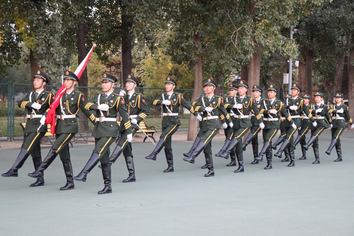 宽阔整齐的操场是金黄的幕布,校国旗队的队员们平展鲜艳的国旗从一片肃穆中走来。步履落落整齐,足音声声入耳,激荡着在场北体人心中澎湃的爱国之情。老师、同学们齐唱国歌,对国旗行注目礼。