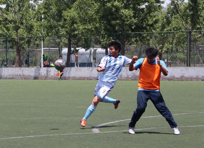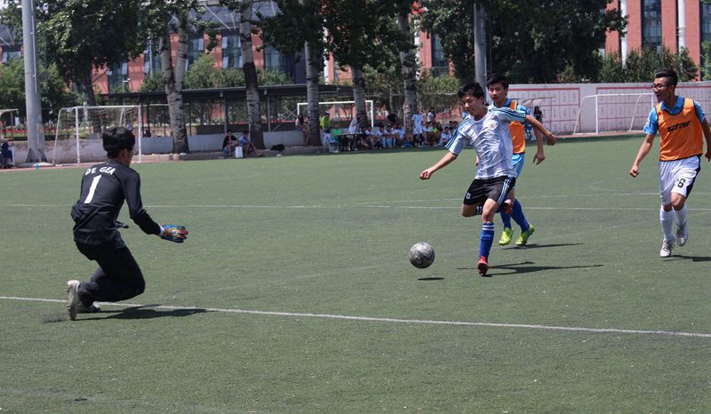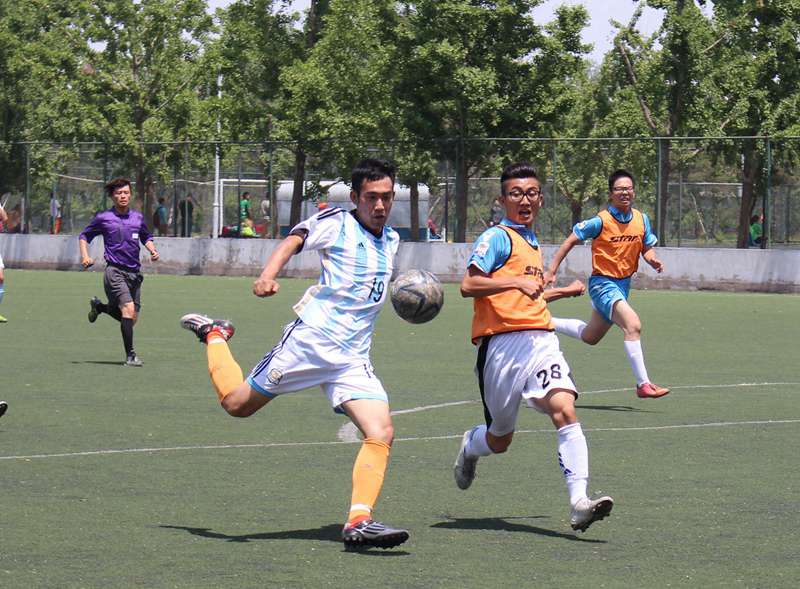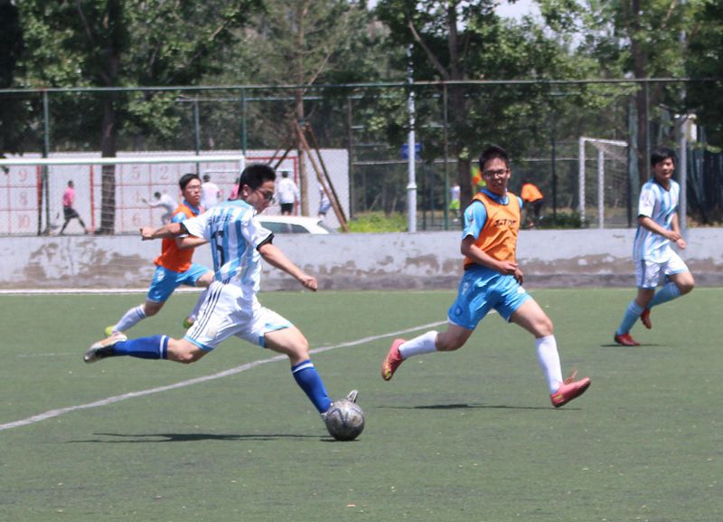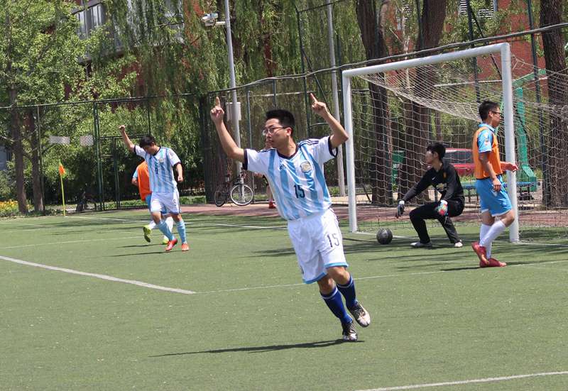 比赛一开始,我院球员就展开强大攻势,15分钟时,许杰捕捉到对方的防守空当,一脚巧妙的推射,率先为我院争得一分。20分钟时,赵承坤中路直塞,冯玮接球爆射,再进一球。随后,赵承坤凭借惊人的速度,单刀直入,门前推射,将比分扩大至3:0。几回合过后,赵承坤接到传球,从左路杀到底线,挑过门将,将球打进。我院球员士气不断高涨,配合也越发默契。上半场即将结束时,许杰从中场长传,冯章帅临门一脚,我院再下一城。下半场,双方都稍稍放缓了比赛节奏。对方虽然组织了多次极具威胁的进攻,但始终没有突破我院球员的防线。我院玉苏普和焦亦飞虽屡屡杀入对方禁区,却也未得分。整个下半场只有赵承坤打进一球。最终,我院以6:0的比分取得胜利。
