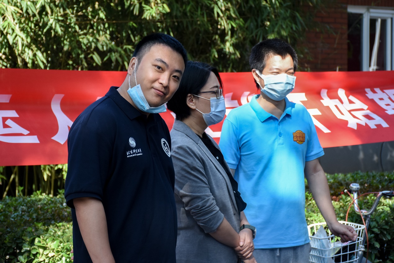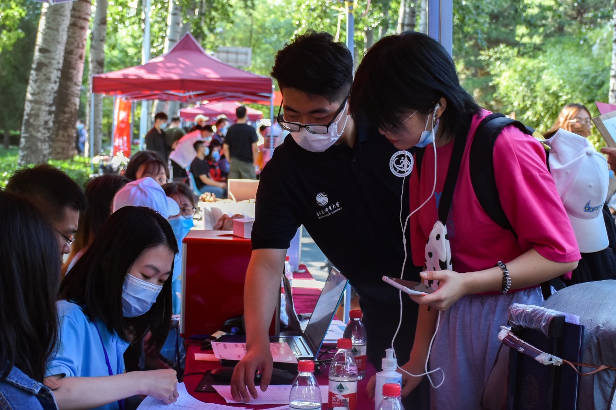 学院领导全天都到迎新现场看望新生和志愿者同学们,辅导员娄立天和刘鸿瑞一直坚守迎新一线,为新同学答疑解惑。