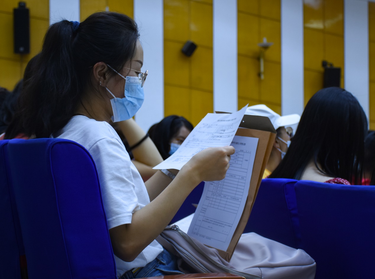 娄立天老师首先代表学校及学院表达了对2020级新生热烈的欢迎及由衷的感谢,随后为全体新生一一介绍了各位辅导员及助理辅导员,并对报到的相关流程和表格填写提出了要求。