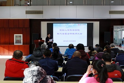 为贯彻落实校工会《关于召开taptap竞彩足球2016年二级教代会(教职工全体大会)的通知》文件精神,taptap点点足彩于12月28日上午10点在教学实验楼322教室召开学院二级教代会暨全体教职工总结大会,全体教职工参加了本次大会。校党委宣传部副部长薛文婷、统战部郭锐也参加了本次会议。