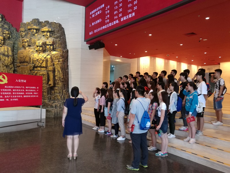 最后,全体党员在抗日战争纪念馆大厅进行了重温入党誓词宣誓活动,全体党员面对党旗再次庄严宣誓,使大家再一次接受心灵的洗礼,进一步增强党员的神圣感、责任感和使命感。