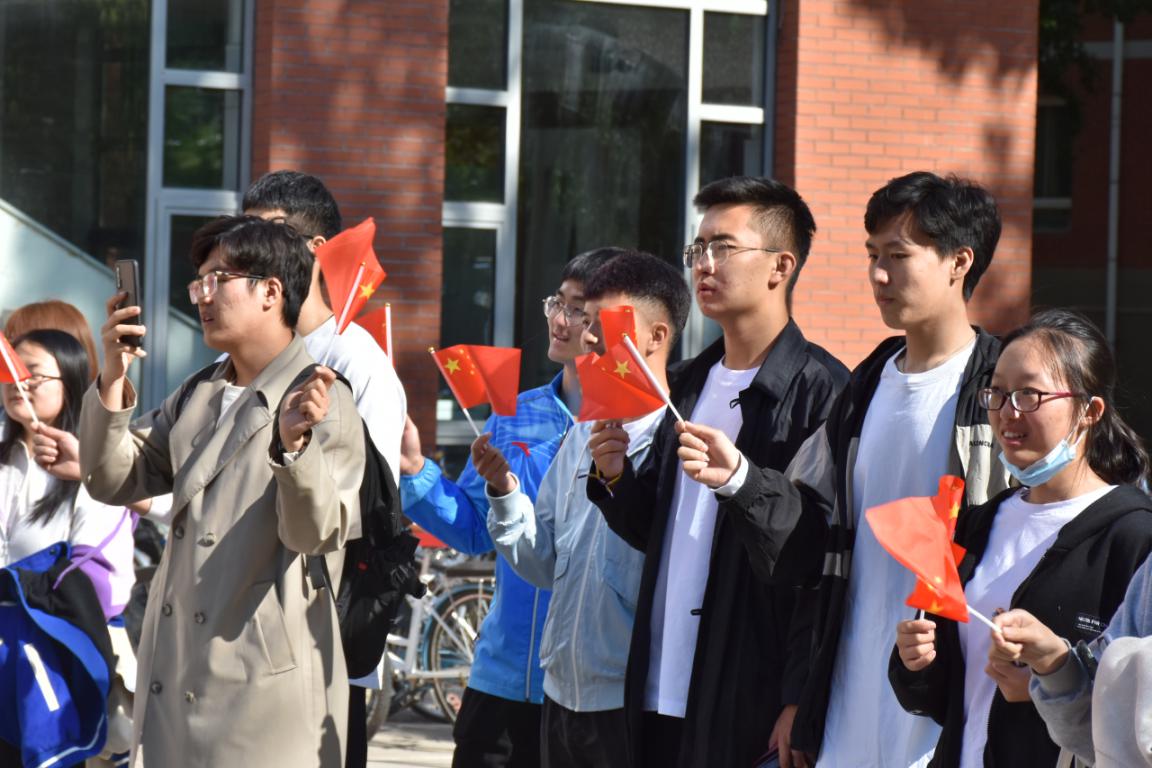 此次快闪活动,学院师生积极响应,院长王荣辉、分党委书记雷厉、教育部双带头人教师支部书记石丽君等也参加活动,担任领唱或领衔合唱,活动现场热情高涨、反响强烈,不断有同学驻足观看。两首脍炙人口的经典曲目《唱支山歌给党听》、《没有共产党就没有新中国》更是引起现场观众齐声合唱。