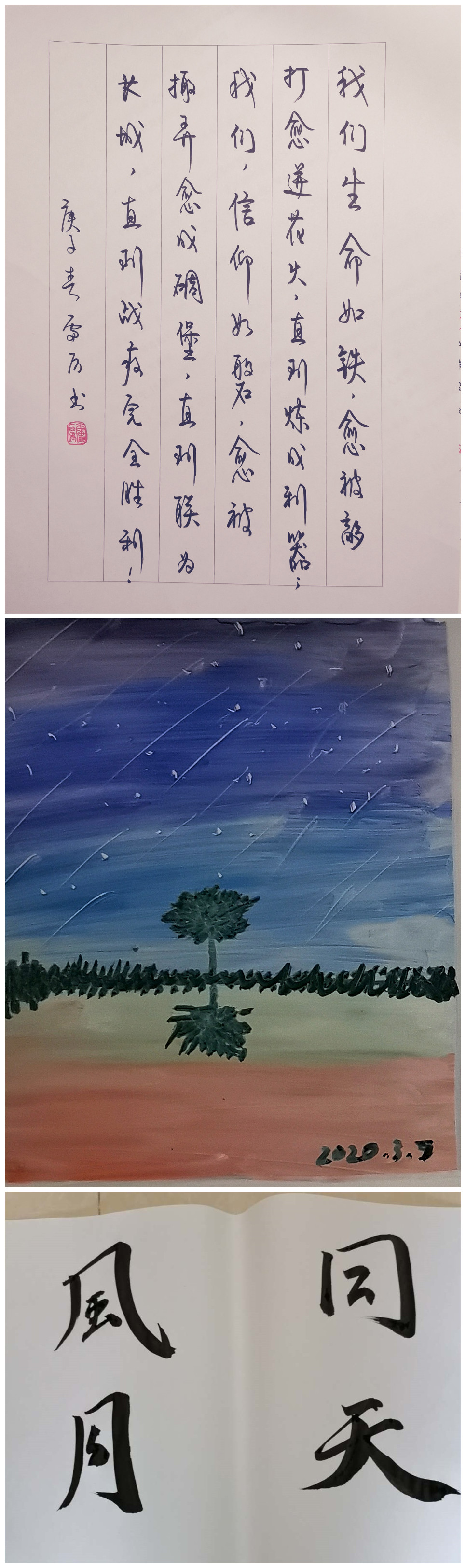 本次工会活动历时1个多月,共分六类项目,分别是书画类—“疫情防控,共克时艰”书法绘画比赛;诗歌类—“凝心聚力,众志成城”诗歌比赛;美食类—“防控疫情、健康饮食”美食制作比赛;摄影类—“春暖花开,山河可期”风景摄影比赛;视频类—“秀才艺,展风采”短视频比赛;文学类:读书分享,影视分享。