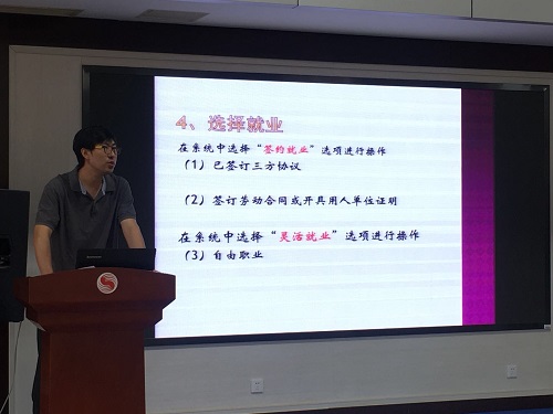 会上,毛文君老师分别从毕业日程安排,毕业去向材料报送,毕业手续办理等与毕业生切身利益关系紧密的几个方面进行了讲解。同时,毛老师结合过去几届毕业生的真实案例,针对毕业生在毕业前后容易遇到的各种实际问题和解决方案向同学们进行了详细说明。最后,毛老师就同学们提出的问题进行了现场解答。