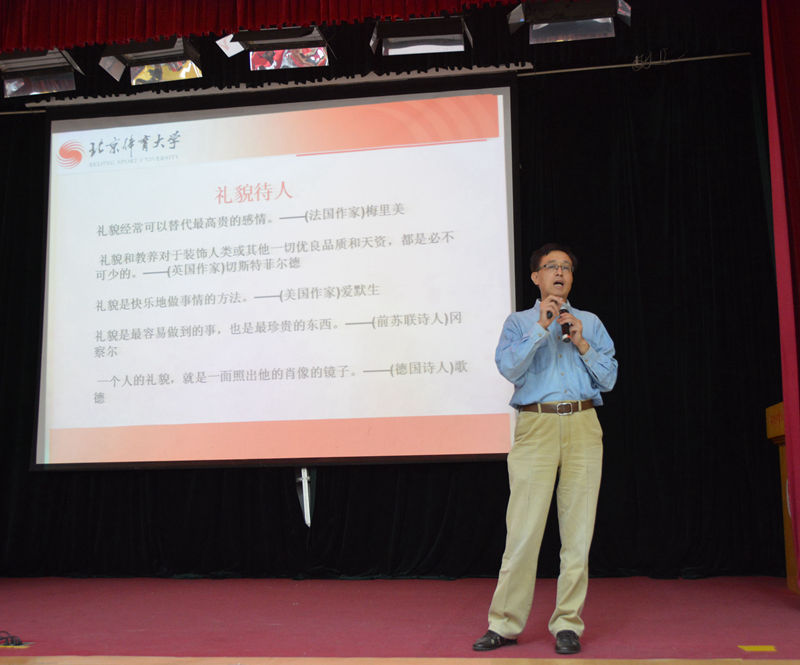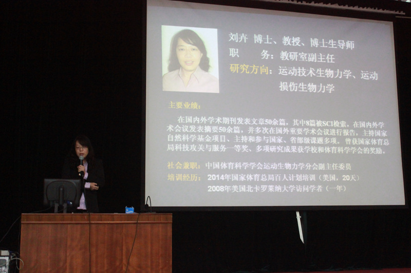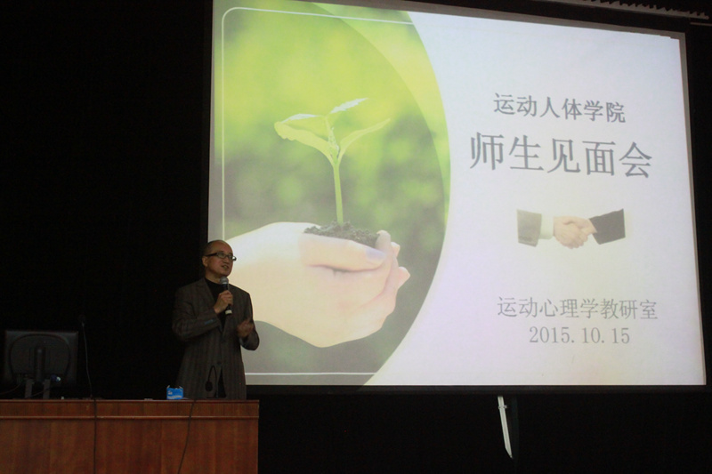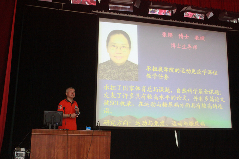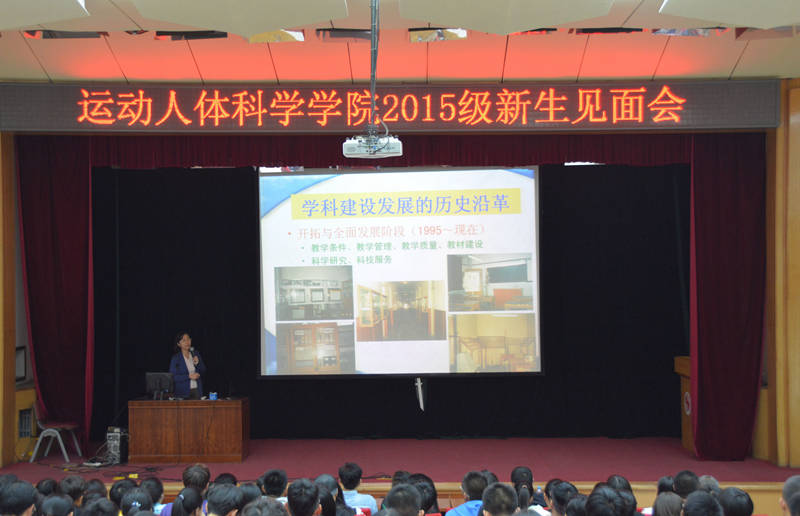 首先,毛院长作为主持人对出席活动的领导和老师进行了逐一介绍。随后,运动解剖学教研室罗冬梅老师、体育统计与测量教研室任弘老师、运动生物力学教研室刘卉老师、运动生理学教研室周越老师、运动心理学教研室迟立忠老师、运动生物化学教研室曹建民老师,分别代表各自教研室依次上台,为同学们介绍教研室的历史沿革、师资力量、研究方向等基本情况,并对新同学们提出建议和希望。