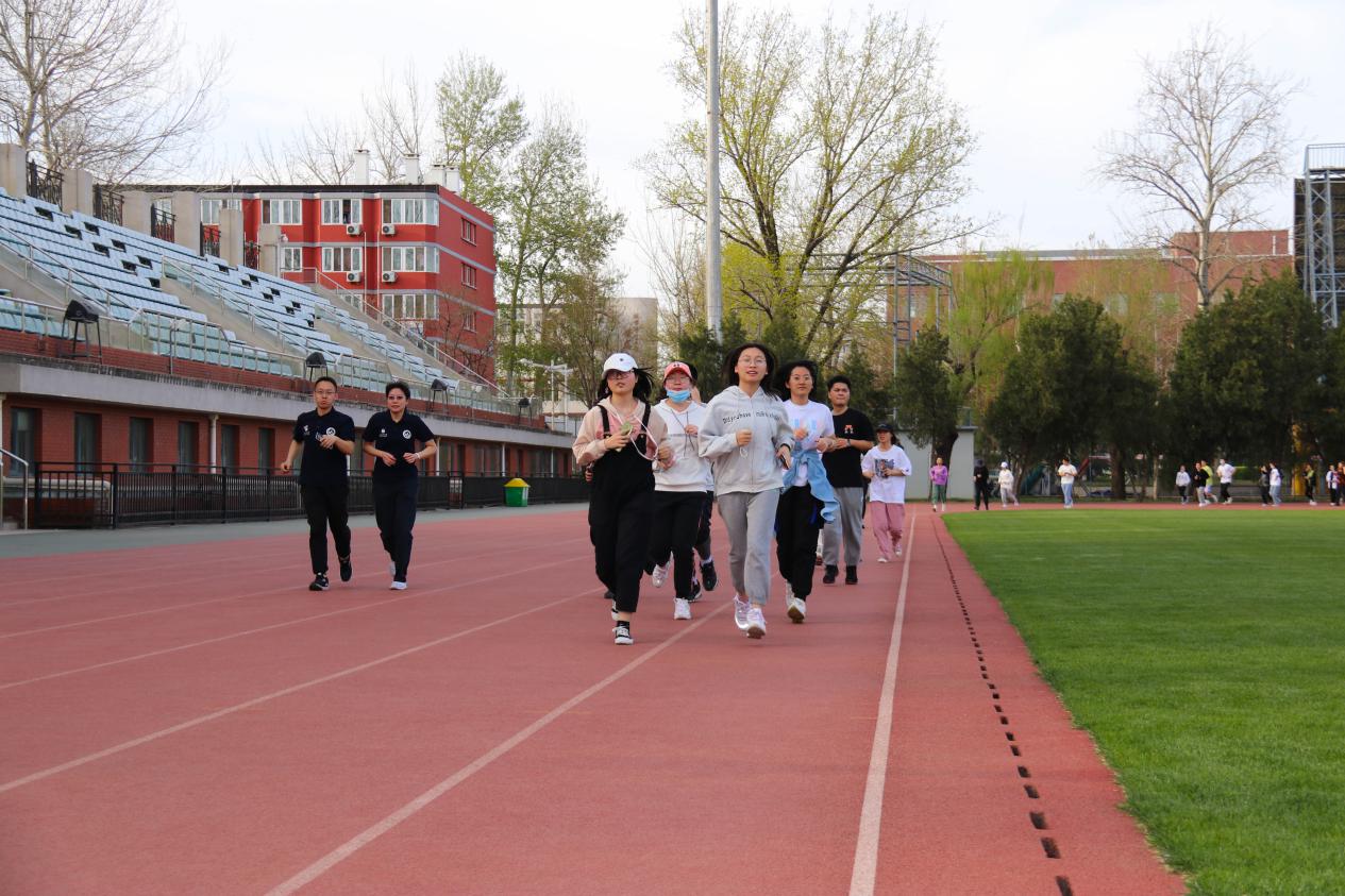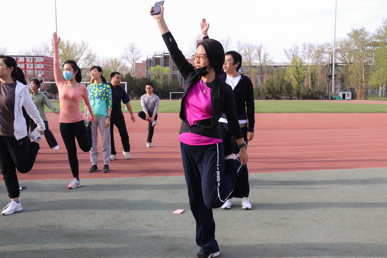 院办吴晓薇老师曾是国家队的体能指导师,在跑步之前,吴老师带领全体师生进行了专业的跑前拉伸和多种热身活动。而后一声令下,院办老师和2020级同学开始了2公里以上的健身跑,将学院的健身活动推向高潮。