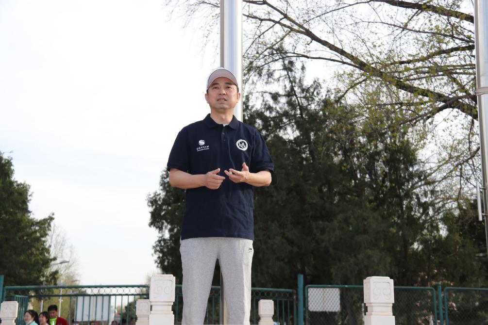 在本科生辅导员娄立天宣布本次启动仪式后,院长王荣辉做了动员发言。他指出,“百公里健身跑”是我院在全校率先推行的集体健身活动,并纳入学院2018版培养方案中。2018年施行两年多以来,已取得显著效果,各年级同学的身体素质有了较大提高,2019年、2020年学院足球、篮球、排球代表队分别在全校联赛中取得冠、亚军的佳绩,与坚持健身有很大的关系。该项活动既是实践教育,培养同学们将体育锻炼与所学课程结合,以学促练,用理论带动实践,知行合一,也是综合素质教育,是践行“五育并举”的最佳方式之一,更是养成教育,培养同学们“自信”“自强”“自律”的精神、意志品质和良好的生活方式。学院将坚持把这项活动推行下去,学院领导和老师们率先力行,为体育“强”院奠定坚实基础。