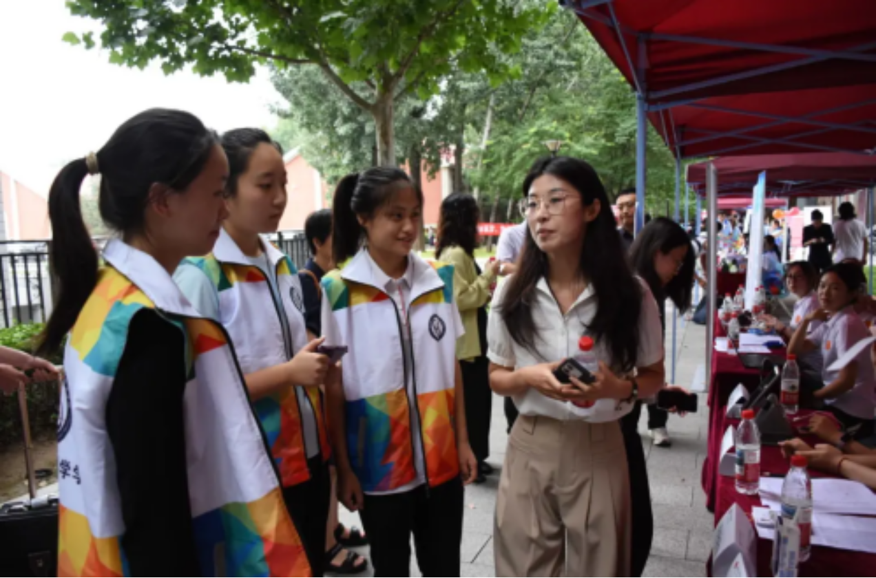 刘欣然老师与新生志愿者交谈