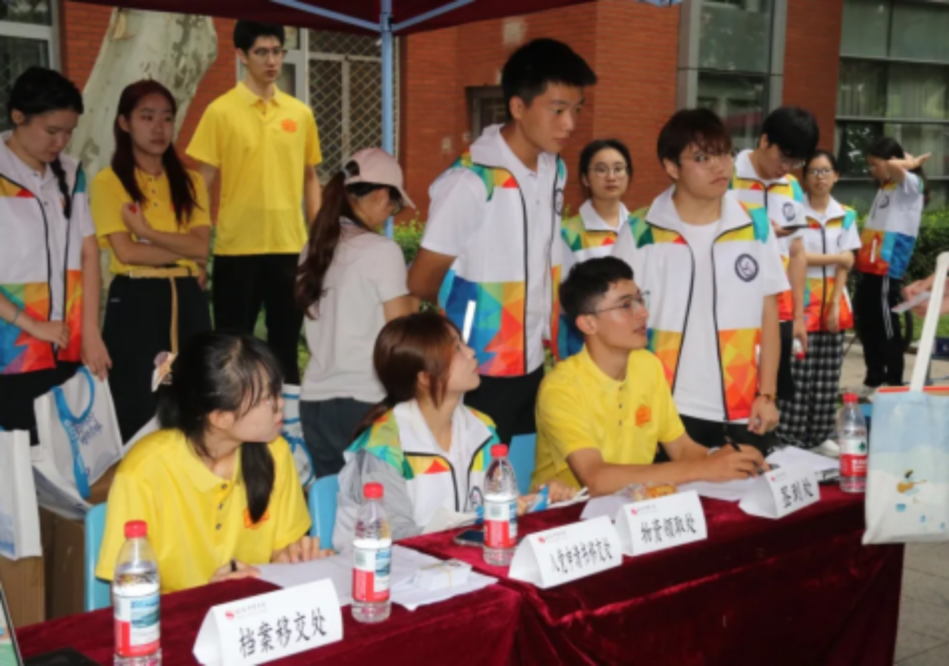 志愿者们进行迎新工作
