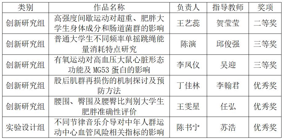 taptap竞彩足球作为国家级实验教学示范中心单位,在中国运动与健康研究院的精心组织下,本次论坛共申报了20项作品,最终代表学校进入决赛的6项作品皆来自我院学生。经过两天紧张的线上比赛,获得二等奖1项、三等奖2项、优秀奖3项的佳绩,创造了我校参加该项活动以来的最好成绩。具体获奖信息如下: