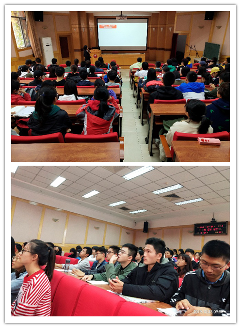 2019年10月23日上午九点四十五分,在taptap竞彩足球求是报告厅开展了“不忘初心,牢记使命”主题教育,暨2019级本科生党课辅导。主讲人是运动人体科学院分党委书记雷厉老师,2019级本科新生全部出席,共同出席的还有新生辅导员姚晨曦老师。