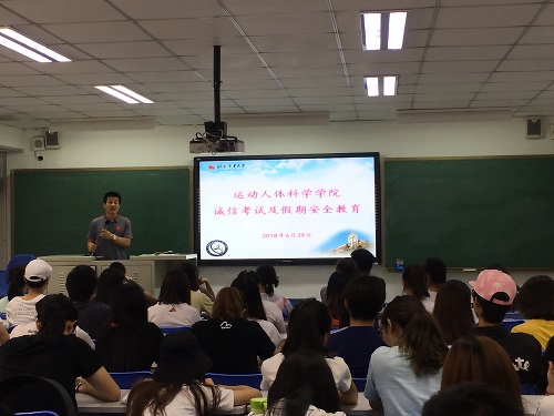 为营造良好的期末考试环境,保证暑假的安全稳定,2018年6月29日11:00,taptap点点足彩组织2016级全体同学,于教学楼112教室召开了“诚信考试 平安假期”主题教育大会。会议由辅导员王鹏老师主持。