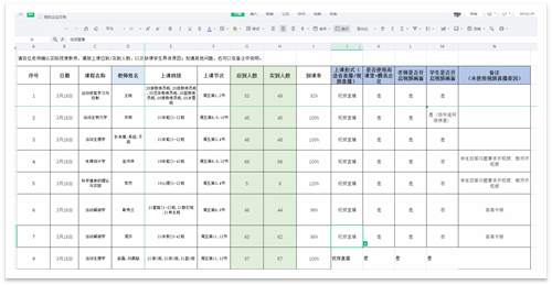 采用共享文档对每日授课教师进行一对一巡查统计,结合雨课堂数据,每日向教务处提报《学院教师授课情况巡查统计》。