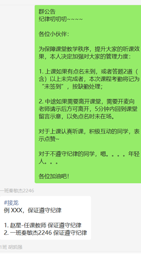 图6 学院教师在微信群中强调纪律要求、耐心答疑
