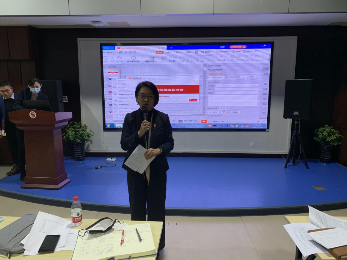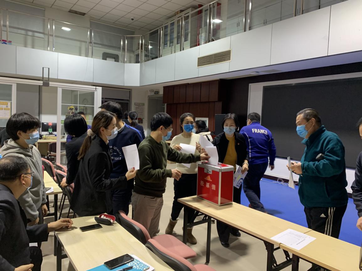 最后,全体党员师生现场填写了《支部书记测评表》,对10位支部书记2020年的党建工作进行现场测评。