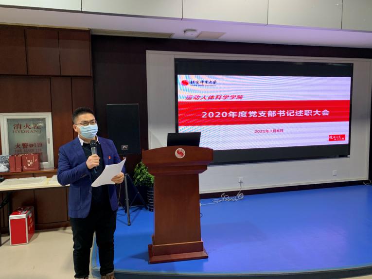会上,运动生理学教研室支部等5个教研室党支部、2个本科学生党支部,3个硕士研究生党支部,共10个党支部的书记依次述职,他们分别从履职情况、主要做法、存在问题及下一步改进方向几方面进行述职,全面梳理和总结过去一年支部党建工作开展情况,包括认真学习贯彻落实习近平总书记在统筹推进新冠肺炎疫情防控和经济社会发展工作部署会议上的讲话精神,持续推进“不忘初心,牢记使命”主题教育,组织参加十九届五中全会精神宣讲,以及组织规范、严肃的支部党建活动。各支部书记能聚焦基层党建工作质量提高,突出政治功能,促进党建业务相融合、共发展。