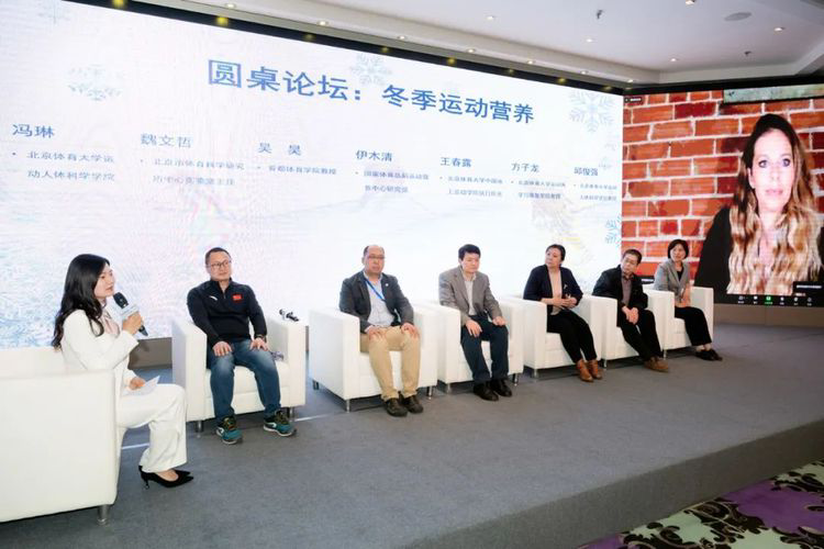 随后,论坛邀请了国家运动营养测试研究中心/国家体育总局运动营养重点实验室主任伊木清研究员、冰上运动学院执行院长王春露、国家体育总局重点实验室主任吴昊教授、运动医学与康复学院方子龙教授、北京市体育科学研究所中心实验室主任魏文哲、taptap点点足彩运动生物化学教研室主任邱俊强教授、康宝莱运动表现及教育培训总监Dana Ryan博士开展了有关冬季运动营养的圆桌讨论,就运动营养发展、运动营养研究方向及在运动训练过程中运动营养的具体实施方法等问题的探讨与交流,提出了运动营养行业具有良好的发展前景,并将致力于为更多人群服务。圆桌论坛由taptap点点足彩运动生物化学教研室冯琳老师主持。