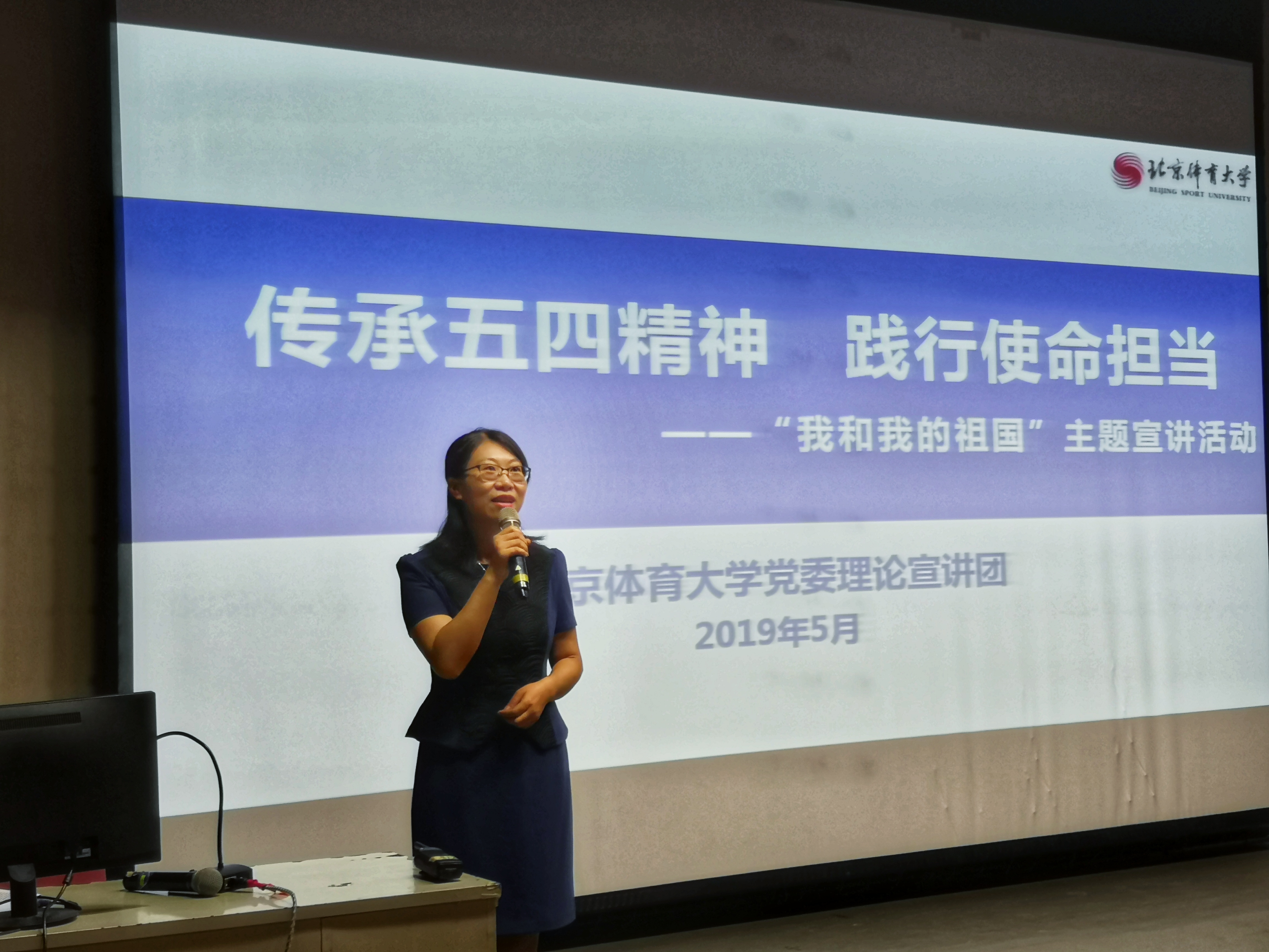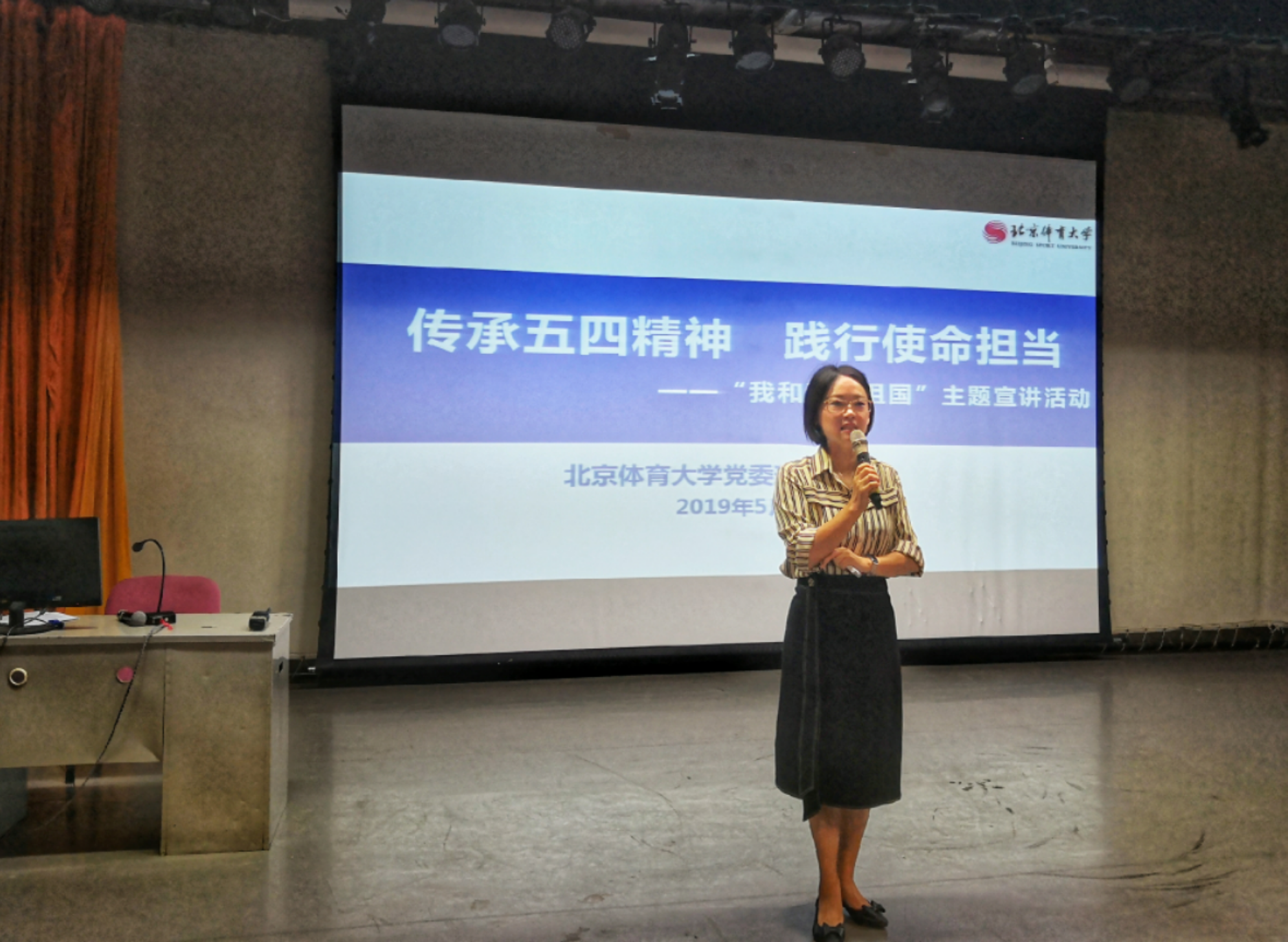 2019年6月5日上午十点,taptap点点足彩在卓越报告厅组织开展了“我和我的祖国”“祖国在我心中”主题党日、团日活动。学校党委理论宣讲团成员、党委组织部常务副部长朱晗同志受学院分党委邀请作了《传承五四精神,践行使命担当》专题宣讲。宣讲会由分党委书记雷厉主持,各年级辅导员、运动人体科学学院全体本科生和研究生四百余人参加了会议。
