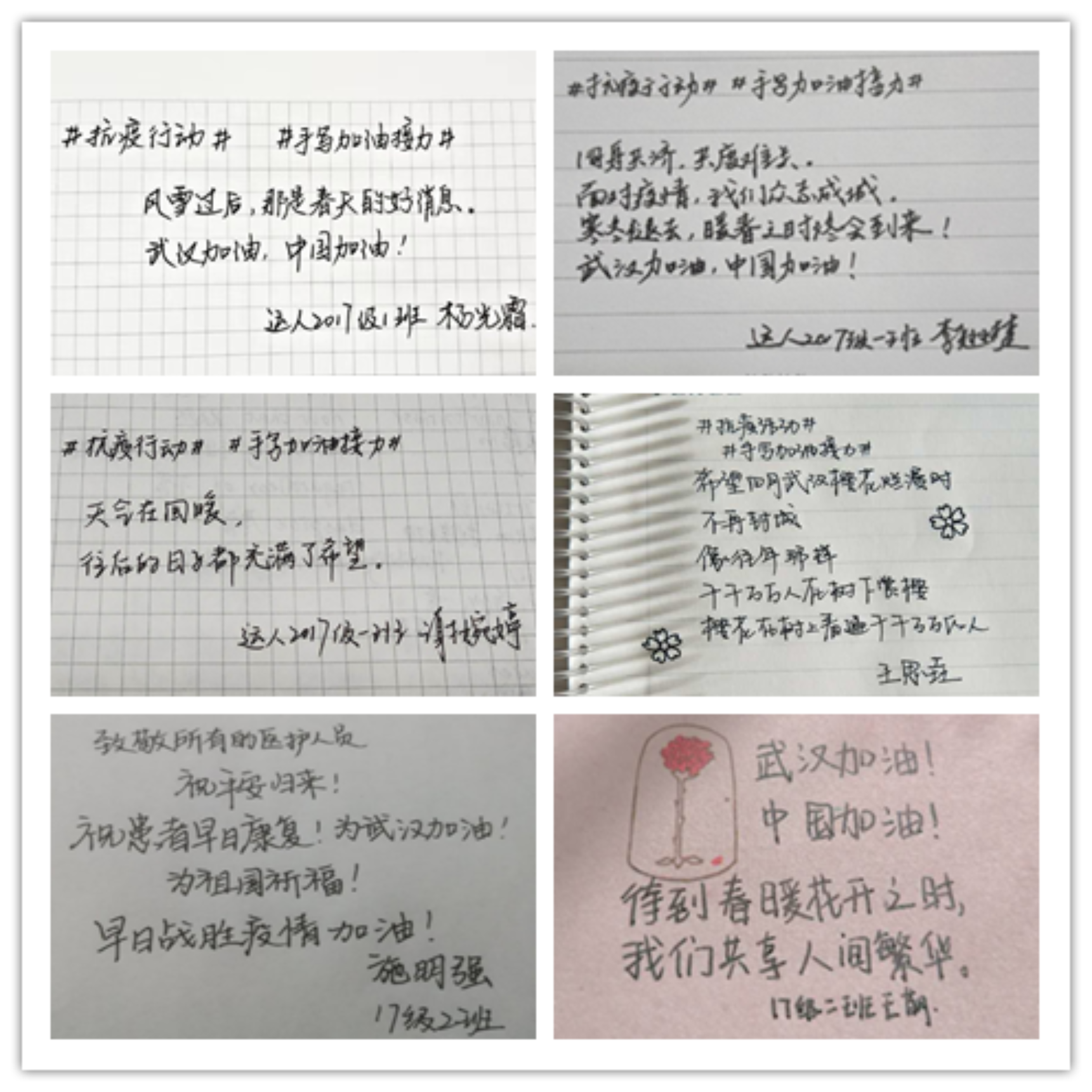 学生第一党支部的成员们受到勇赴抗疫一线“逆行者”们的使命感、家国情怀的触动,节目之后深入交流学习心得。年级成员在班干部的组织下,完成了“手写加油接力”,用最真挚的情感致敬最美逆行者,用最诚挚的祝福为武汉加油,为中国加油。