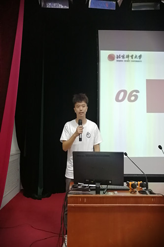 紧接着周财亮老师向同学们介绍了本科期间主要的科研活动,包括学术讲座、创新科研项目、学术会议、毕业论文等。“在科学上没有平坦的大道,只有不畏劳苦沿着陡峭山路攀登的人,才有希望达到光辉的顶点”。周老师在最后祝同学们每天都能进步一点点,大学期间收获快乐和成长!