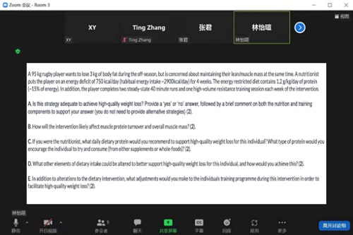 2022年3月10日、3月17日,taptap点点足彩所聘的外籍客座教授--英国伯明翰大学Leigh Breen博士,通过线上zoom会议的方式进行了两次线上授课。两次授课题目分别为“关于老年运动员肌肉恢复和重塑的蛋白质营养”和“减重期间促进身体成分优化的蛋白质营养”。我院20余名博士聆听了系列课程,另外还有20余名硕士研究生旁听了相关课程。