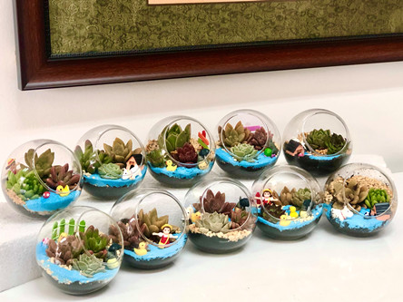 3月8日下午14:00,学院工会在实验楼306会议室组织部分在校女性教职工进行了多肉生态瓶DIY的休闲活动。老师们巧思设计,精心修饰,将一株株多肉植物放入斜口瓶中,搭配出一个个美丽的多肉小世界。