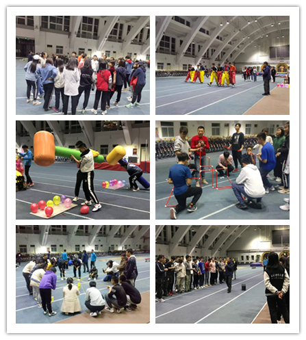 在活动正式开始前,主持人张伟先带领同学们做了热身活动,之后大家按照班级分成了四队。在主持人的引领下,第一个游戏“四人五足”正式开始,比赛以接力赛的形式进行,需要队友间的密切配合。为了赢得比赛各个队伍绞尽脑汁,场面十分激烈。第二个游戏要求两名同学抱着庞大的充气锤子冲向跑道终点砸气球。有了第一轮游戏时的磨合,大家的配合更加默契,战术也花样百出,每队的表现都看点十足。第三个游戏是“躲避球”,规则是其中一个队伍的同学围成外圈,扔皮球碰击圈内的另一队从而淘汰对方。游戏中守方灵活躲避,攻方更是不曾“手下留情”。最后一个环节是两个团队游戏,活动都十分考验同学们的默契与耐心,每一位同学都积极参与到团体配合之中,最终出色地完成了游戏比拼。