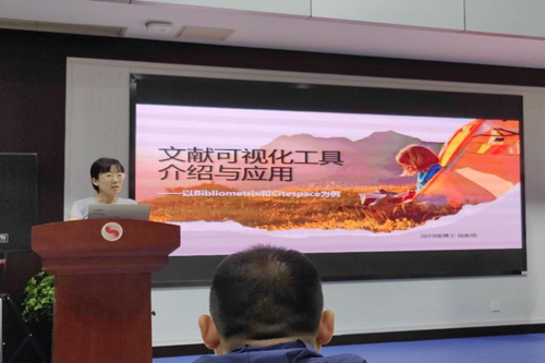 体质与健康教研室的杨新格博士为大家讲解文献可视化相关概念,并以Bibliometrix网站、Citespace软件为例,介绍了文献可视化的研究步骤:从数据查找到文献导出,从软件安装到导入分析,涉及到web of science等数据库,让同学们了解到可视化工具的用处以如何应用。