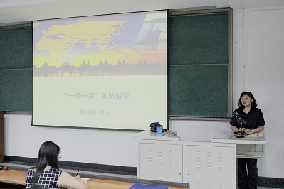 陈世阳老师为大家带来历时近两个小时的《“一带一路”战略解读》专题讲座。讲座从“一带一路”战略的提出、前景以及对策与措施三个方面进行了讲解,以习近平总书记的外交足迹为切入点展开,从“一带一路”的历史背景和时代背景讲起,涵盖我国以及“一带一路”沿线国家的政治、经济、军事、外交、文化等多个方面,内容丰富全面。最后陈世阳老师指出,虽然当前“一带一路”战略正面临着许多的挑战,但也存在巨大的发展机遇,“一带一路”战略的实现将对实现中华民族伟大复兴起到至关重要的作用。