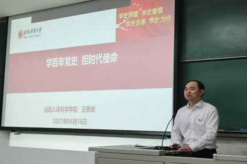 王院长还就新时代体育人的使命担当展开分享。他指出,在新时代,体育工作受到党、政府和全社会前所未有的重视,面临前所未有的机遇,也承担着前所未有的责任。体育报国是体大人不变的初心与使命。站在“两个一百年”奋斗目标的历史交汇点,我们新时代的体育人肩负着建设体育强国、教育强国、健康中国的重任。青年学子要学好百年党史,勇担时代重任,做到爱党爱国、坚定信念,修身立德、砥砺品格,勇于创新、永葆朝气,实学实干、知行合一,当好红色基因传承者、红色事业接班人,将自身发展融入中华民族伟大复兴的历史坐标系中,让青春为祖国绽放!