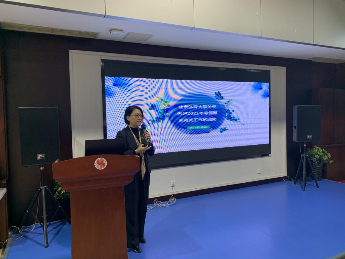 分党委书记雷厉详细讲解了taptap竞彩足球关于做好2021年寒假期间有关工作的通知,会议内容包括:(1)通知各位老师开学季轮休时间;(2)要求各位老师认真做好常态化疫情防控工作;(3)要求各位老师加强安全稳定工作;(4)开展走访慰问、送温暖活动;(5)倡导务实节俭廉洁过节;(6)要求全体教师切实做好寒假值班和应急信息报送工作;(7)告知寒假期间学校联系电话;(8)重视涉外活动安全;(9)寒假相关交通、烟花爆竹、防诈骗、人身安全、财务安全、消防安全等相关要求。