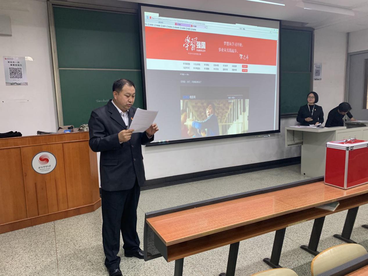 监票人报告计票结果,根据选举办法和计票结果,赵星老师赞成票超过实到会有选举权党员人数的一半,当选为分党委委员。