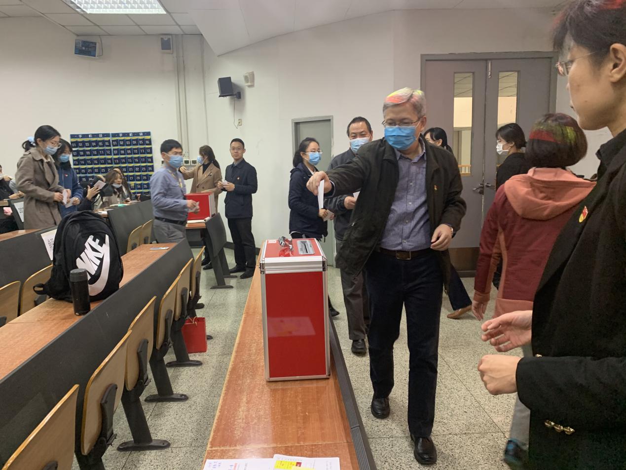 此次会议应到128人,实到109人,请假19人,超过应到会党员人数五分之四的规定,符合开会要求。监票人李俊平当众检查票箱,并确定分发选票符合标准,计票人吴晓薇、杨丹、刘鸿瑞、张鹏程、娄立天、徐利亚向各位代表分发选票。监票人销毁剩余选票,并宣读填写选票说明。随后,各位党员按要求填写选票,并投入选票箱。