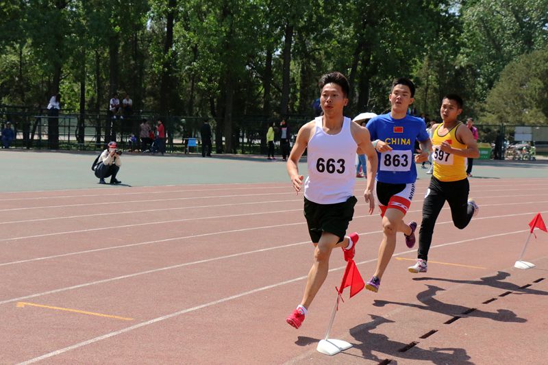 4月22日上午11点,我院王帅、马文龙携手参加了男子800米决赛。选手们实力不相上下,比赛激动人心。
