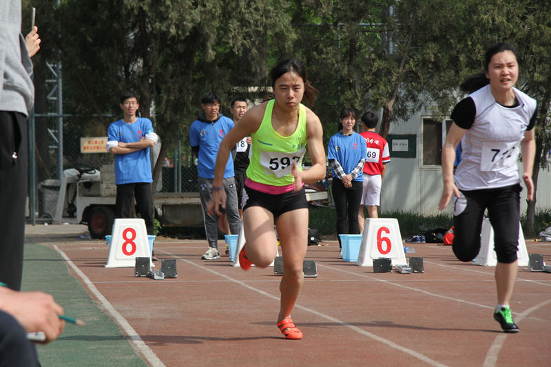 在20日上午的女子100米小组赛中,592号杨蕾以12秒88的成绩取得小组第一打破女子丙组100米校记录,毫无悬念进入决赛。晚上的决赛中,她又创下12秒85的新纪录荣获决赛冠军。赛后我们对她进行了专访。首先,当被问及对比赛和打破纪录的感想时,她表示自己在二月份已经开始做准备,目标是跑到13秒以内,因此对这个成绩非常满意。她尤其提到了在北体比赛气氛很好,大家支持和鼓励的呼喊让她深受感动。其次,作为一名学科生,她认为体育运动对我们的专业非常重要,因为只有真正运动过、进行一些正规的训练,才能真正理解并灵活运用所学的专业知识。她拿自己举例,因为受过训练,她可以更深刻地理解到各位老师上课教授的内容。对于普通人来说,体育运动可以帮助我们养成锻炼身体的习惯,只是需要进行专业的指导,防止受伤,量力而为。最后,她还和大家分享了自己的运动心得:我觉得自己岁数也不小了,还可以回到这个运动场上来,而且成绩也不差,真的很享受这个过程,很感动,感恩我还有这个机会。还有,我觉得运动真的可以让人看起来比较年轻哦,大家都动起来吧!