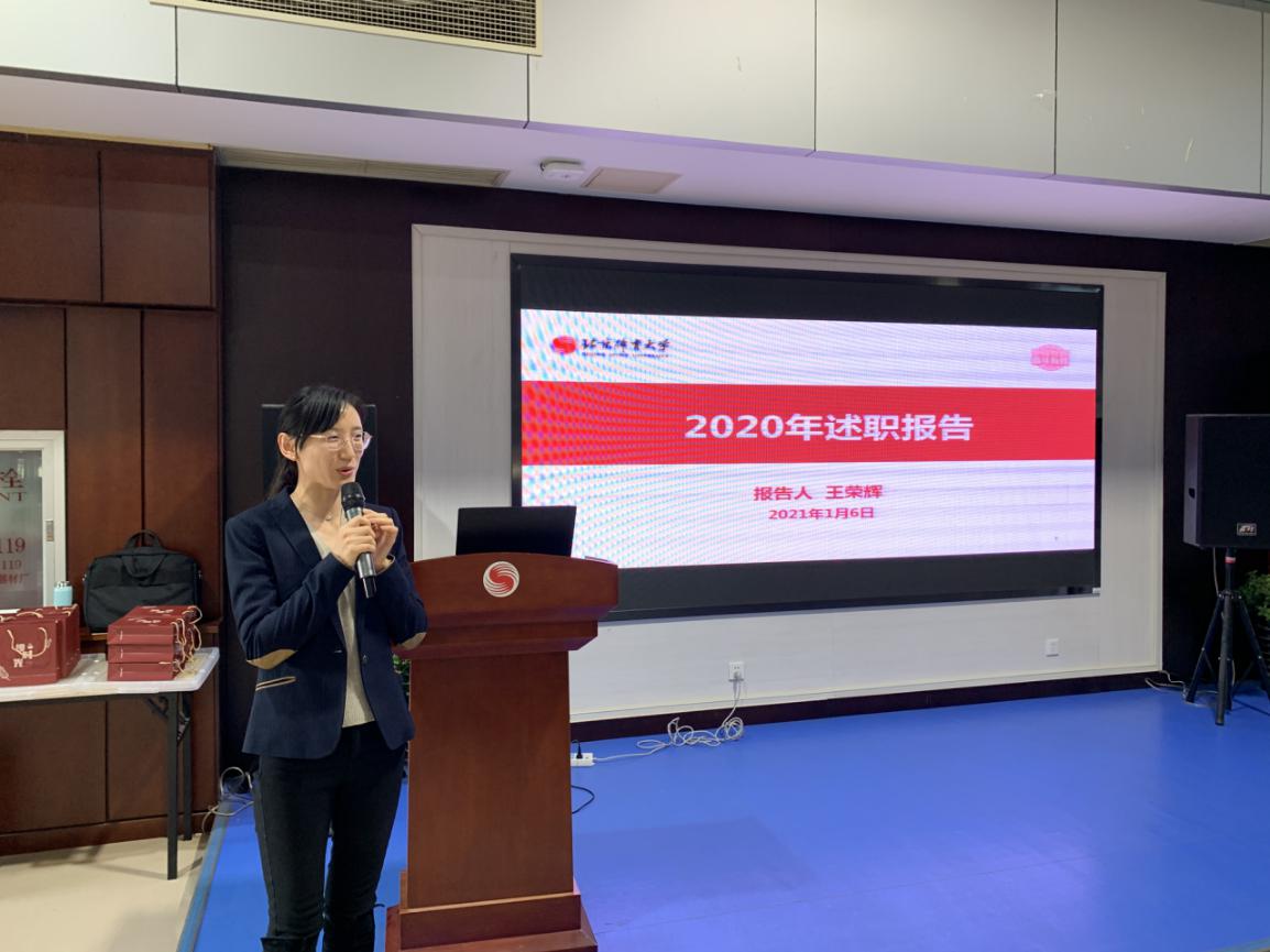 院长王荣辉、分党委书记雷厉分别从“德、能、勤、绩、廉”五方面,结合岗位职责和工作任务,对一年来负责和参与的党建、思想政治、意识形态、疫情管理、课程思政、学生工作、学科建设、教学科研、人才队伍建设、国际化办学以及社会服务等方面工作进行认真和客观的述职,系统总结了学院一年来的成果,深刻剖析了存在主要问题和不足,明确了2021年的工作思路和努力方向。