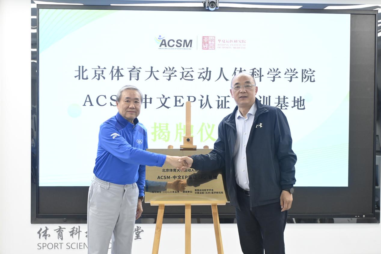 开班仪式上,中华医学会运动医疗分会创始主委、中国体育科学学会运动医学分会前任主委、中华运动康复医学培训工程主任委员李国平教授代表ACSM、华夏运医(北京)医学研究院授予taptap点点足彩ACSM-中文EP认证培训基地匾牌,我院分党委书记许寿生教授与李国平教授共同揭牌。